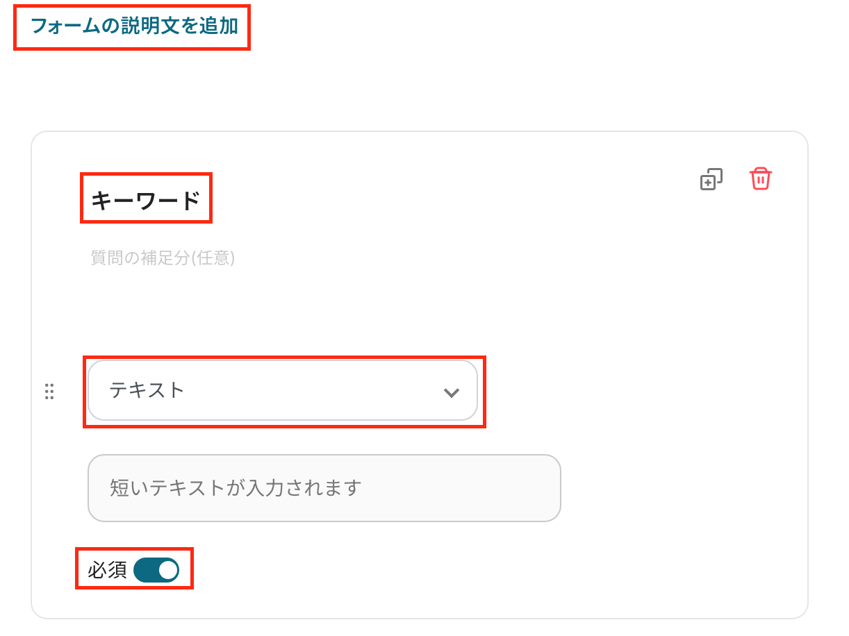 質問文、質問形式、必須項目にするかどうかを設定しましょう!