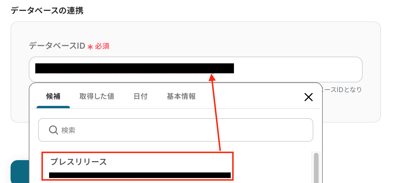 データベースIDを設定します。