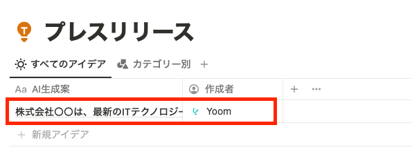 フォームに入力された情報を基にAIがスムーズかつ的確にプレスリリースを作成し、Notionに自動で追加します。