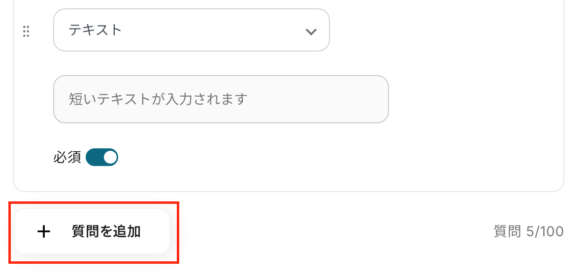 質問を追加したい場合は、「+質問を追加」をクリックしてください。