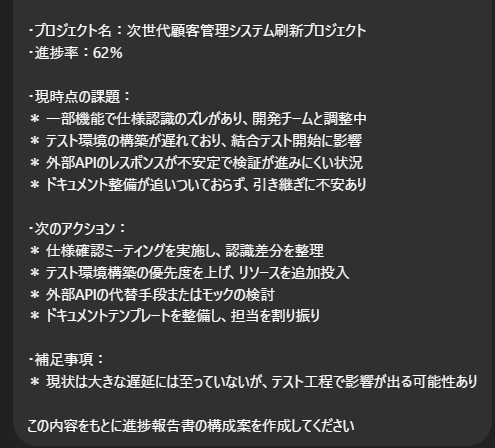 1. 進捗報告書のプロンプト例