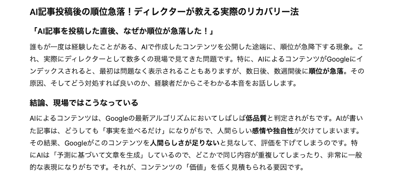 1. 「AI記事投稿後の順位急落!ディレクターが教える実際のリカバリー法」
