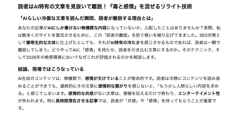 2. 「読者はAI特有の文章を見抜いて離脱!『毒と感情』を混ぜるリライト技術」