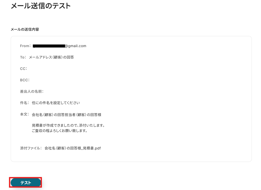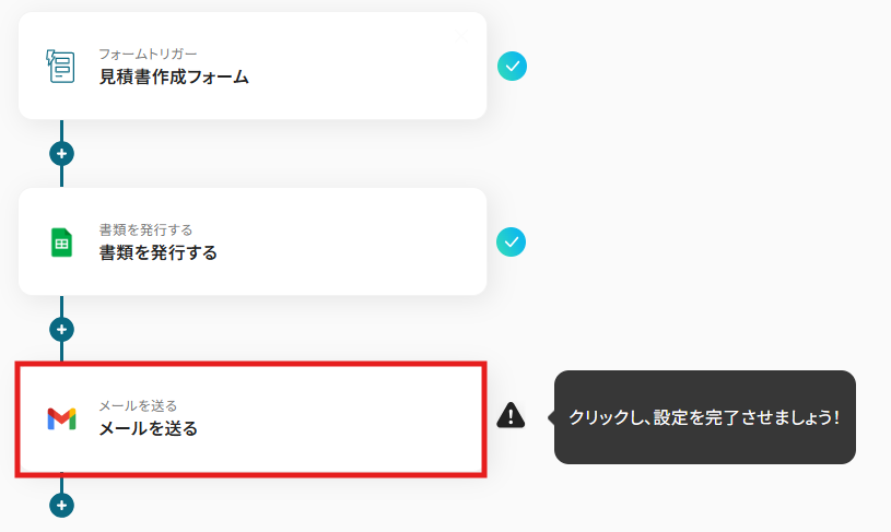 これで【フォームに回答されたら見積書の作成を自動で行い、PDFをGmailに送付する】というフローが完成です。