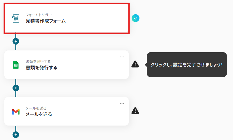 1)まずは「フォームトリガー 見積書作成フォーム」をクリックしてみましょう!