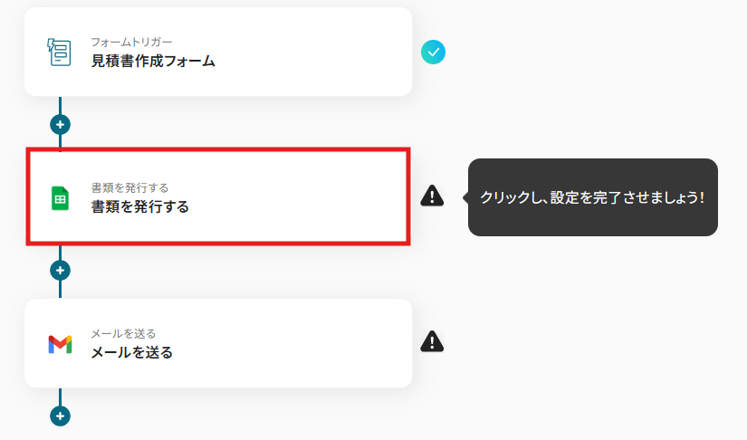 1) フローに戻り、「書類を発行する」のアイコンをクリックします。