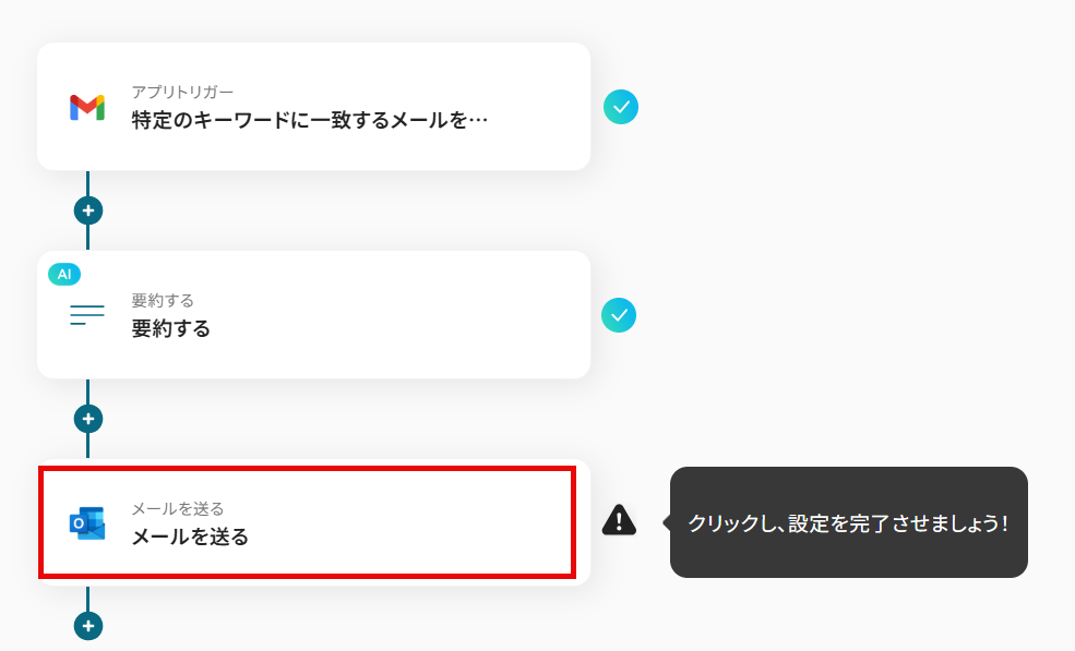 しかし、この自動化を導入することで、Gmailで受信したメール本文をAIが自動で要約し、要点だけをOutlookのメールでチームに共有できるため、情報共有のスピードと正確性が格段に向上します。