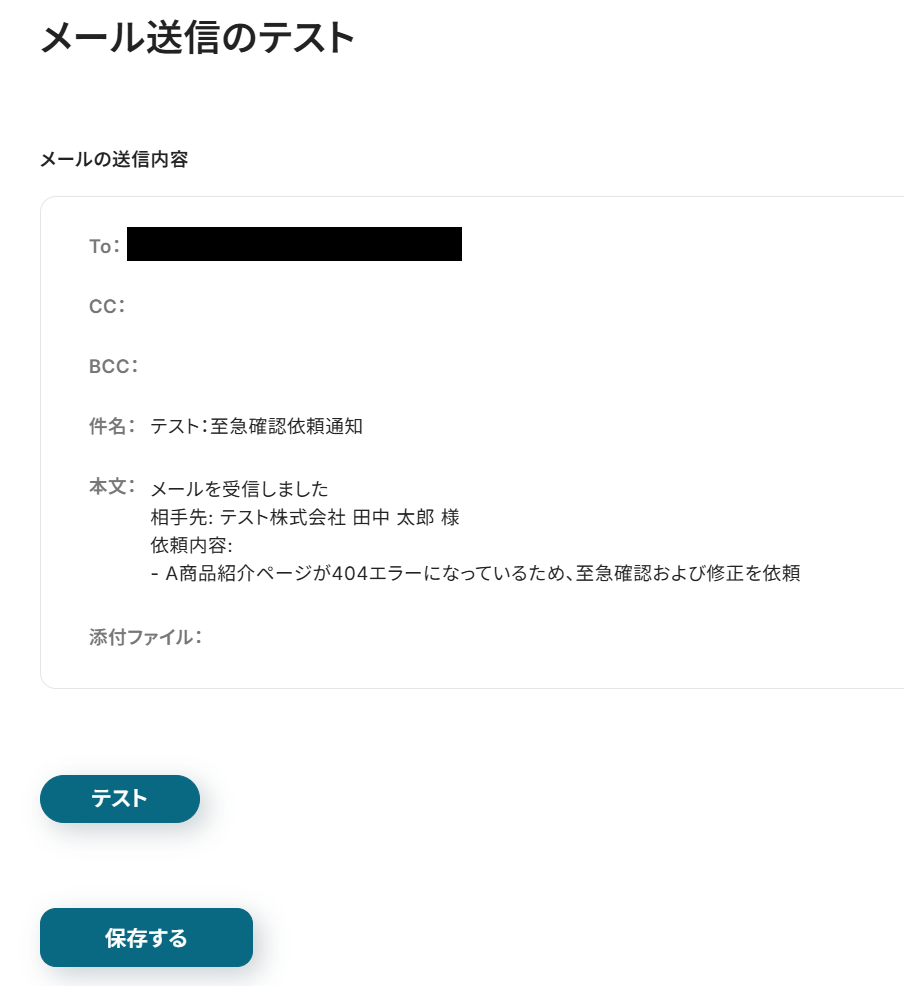 今回は「至急」というキーワードに一致したメールを絞り込むように設定しました。