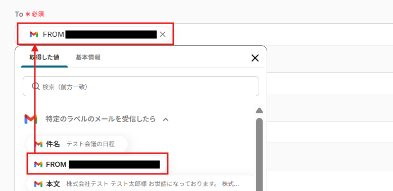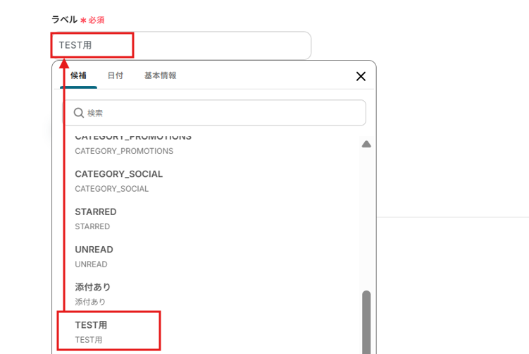 設定ができたら、指定したラベルでメールを受信してから「テスト」を行ってください。