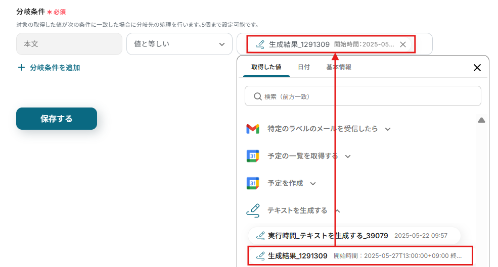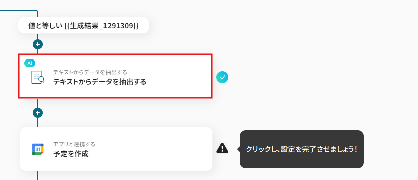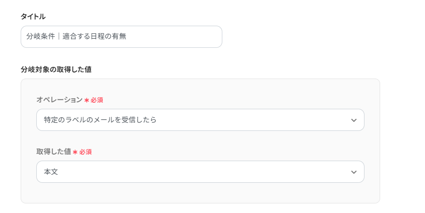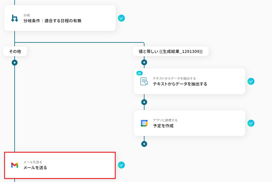 今回は、メールから適合する日程を抽出した生成結果の値と等しいものとそれ以外を分岐条件にしました!