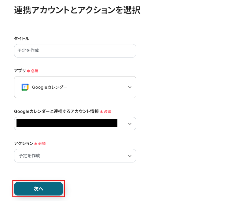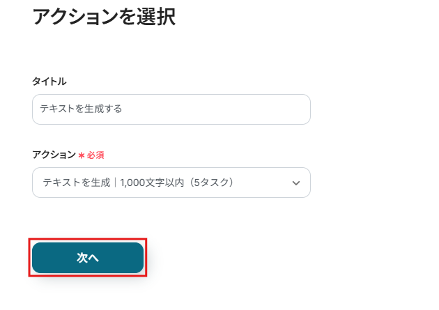 アクションを設定したら、次に進んで下さい。