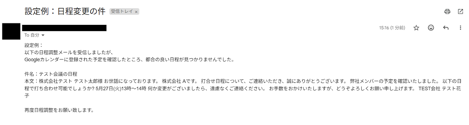 メールの内容を確認して、テストを行ってください。