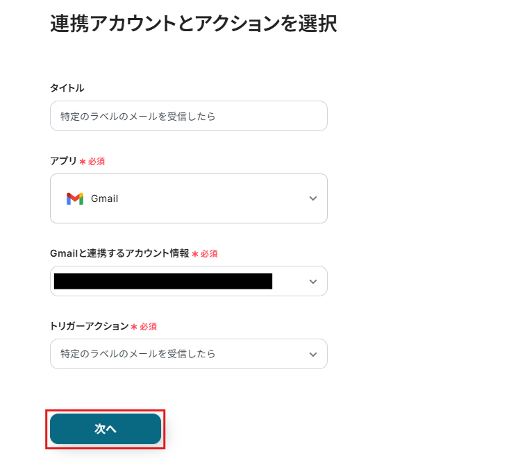 指定したラベルのメールを受信したら、トリガーが起動します。