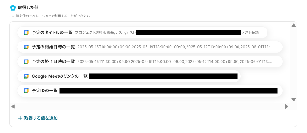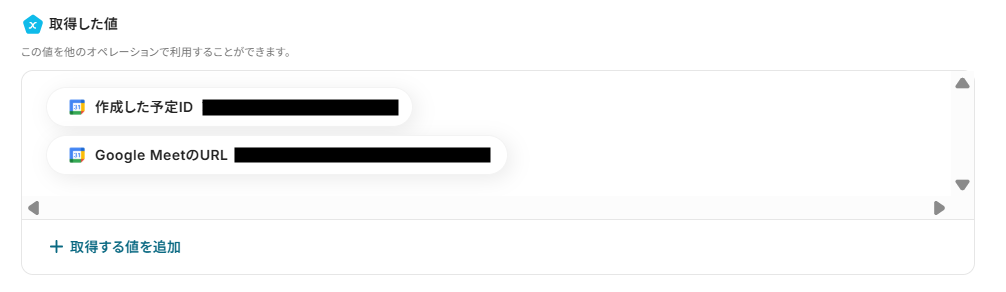 予定のタイトルを入力します。取得した値を使用することもできます。