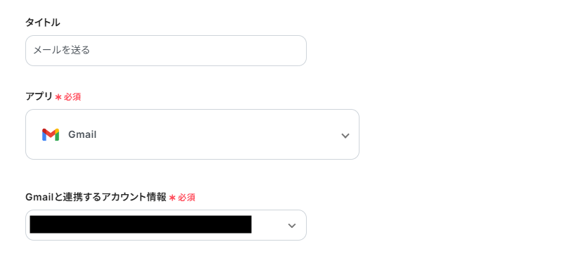 アクションをプルダウンから選択しましょう