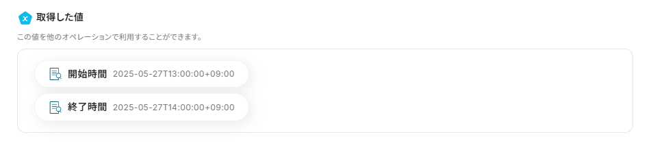 会議の開始時間と終了時間が抽出できていればOKです!