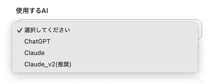 ・使用するAI:以下から選択できます。 ・言語:日本語・英語から選択可能です。