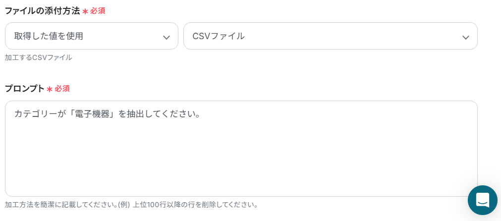 ここでは、指定したCSVファイルからAIを用いて加工する設定をします。