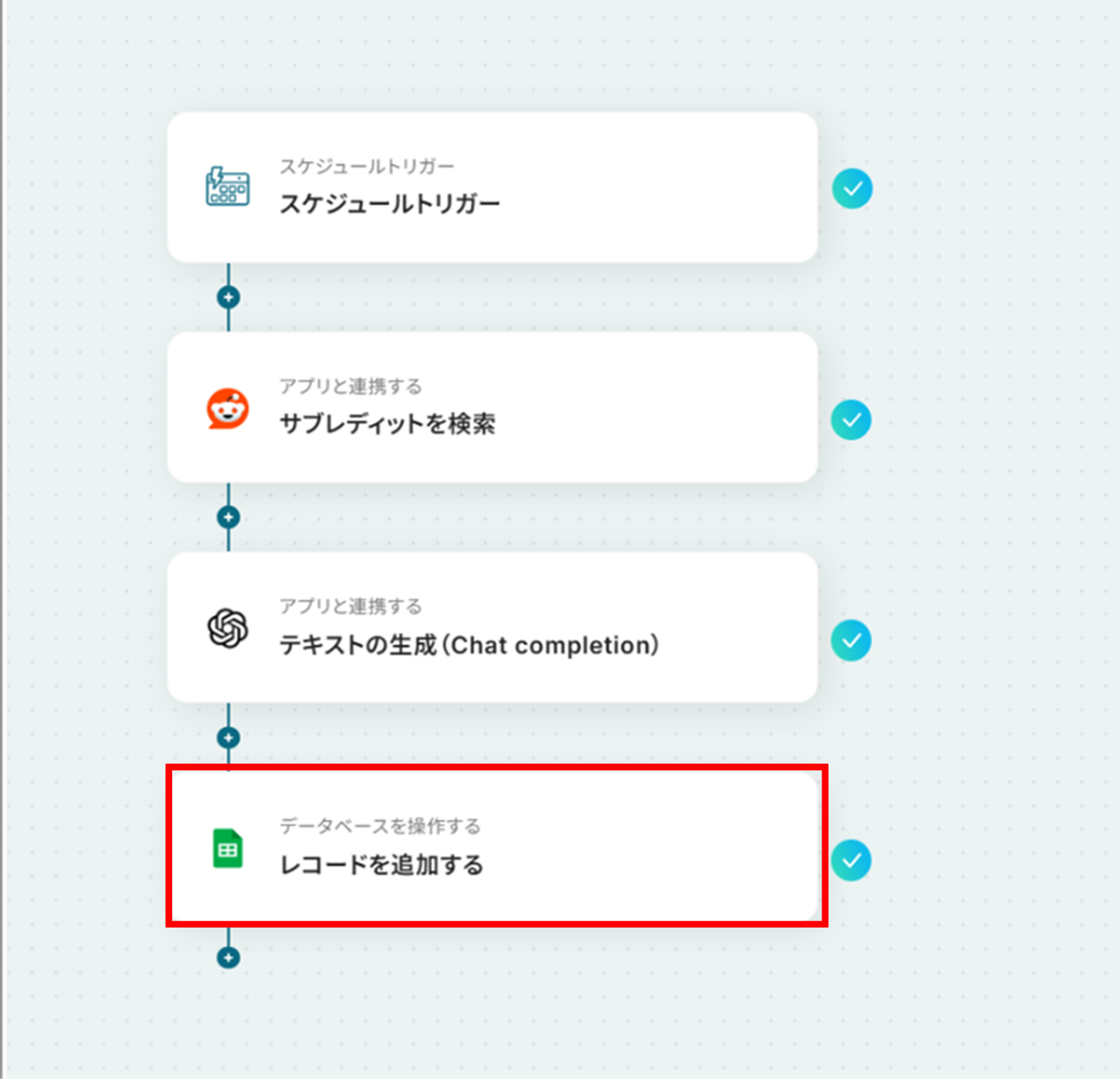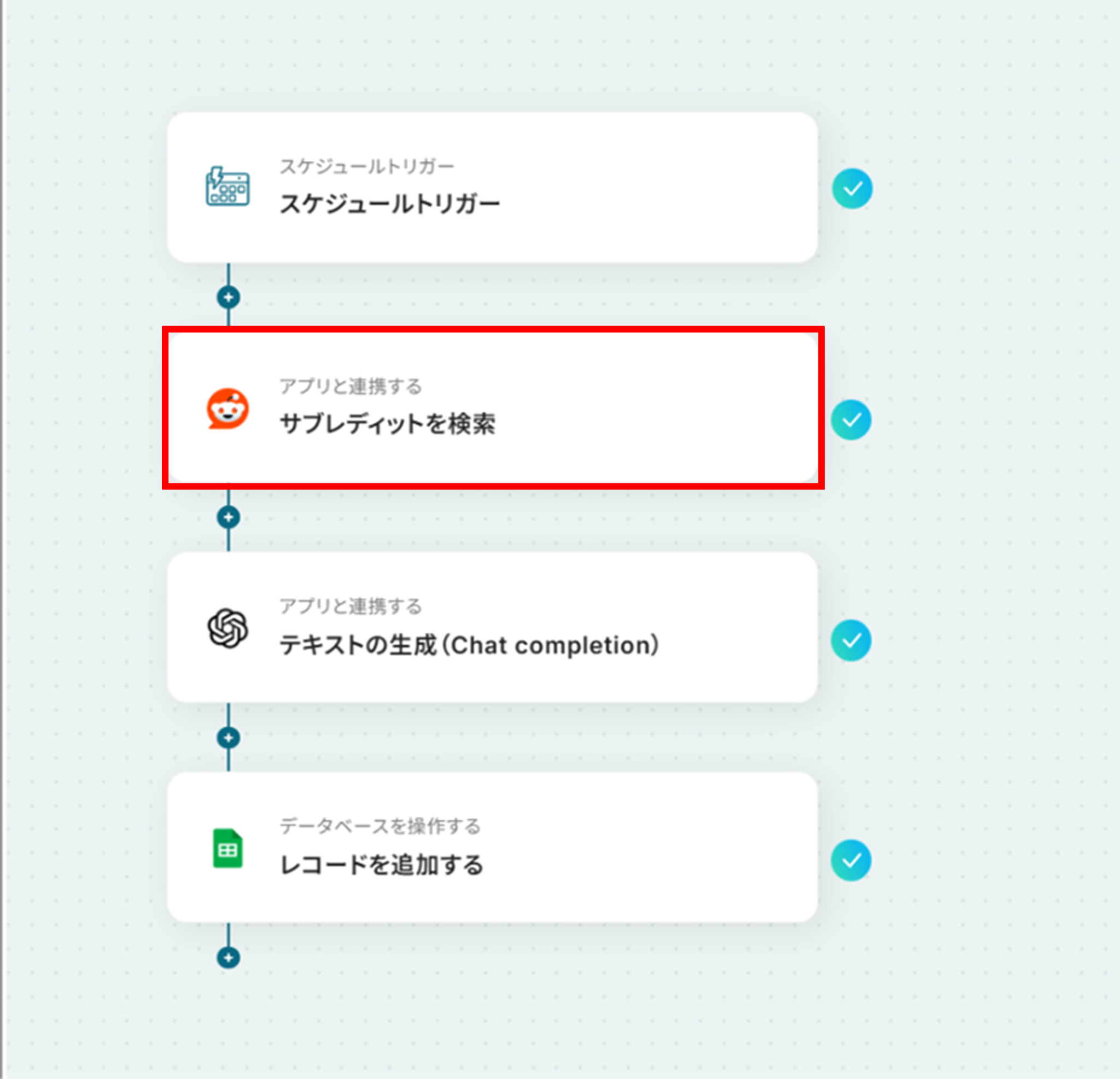 それではここから代表的な例として、定期的にRedditの特定サブレディットから投稿を検索し、OpenAIで市場課題を分析、その結果をGoogle スプレッドシートに自動で追加するフローを解説していきます!
