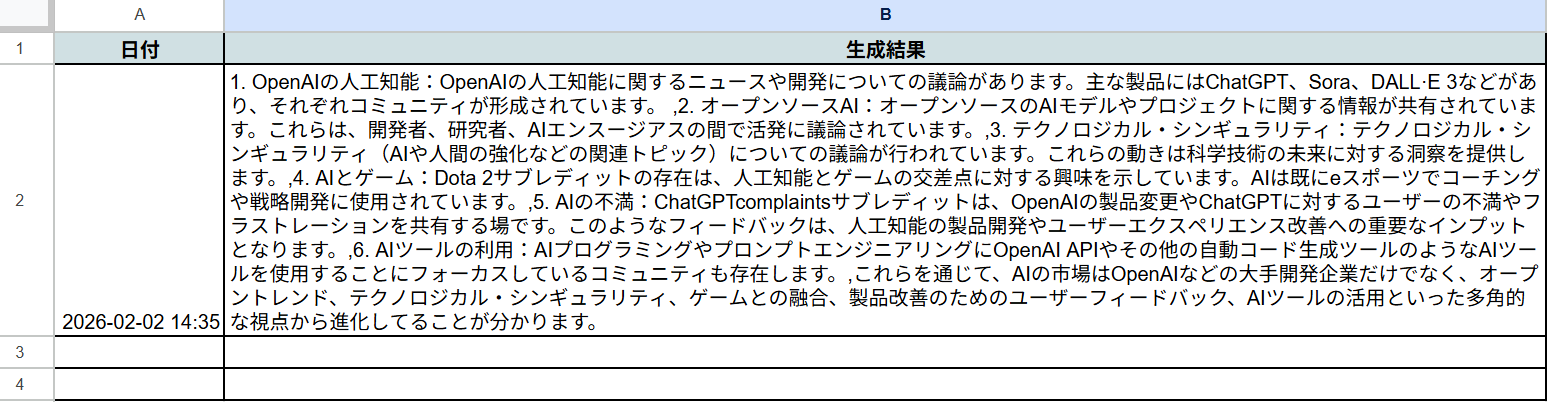 - Reddit、OpenAI。Google スプレッドシートをマイアプリに連携する