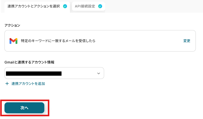 アカウント情報は、トリガーと連携したいアカウントが選択されているか確認してください。