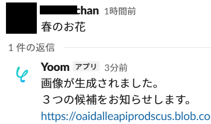 該当のSlackチャンネルで、画像生成を行いたい文言で投稿を行ってください。