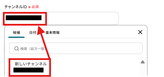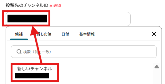 AIで画像を生成したい投稿を行うチャンネルを指定していきます。チャンネルIDは候補より選択してください。