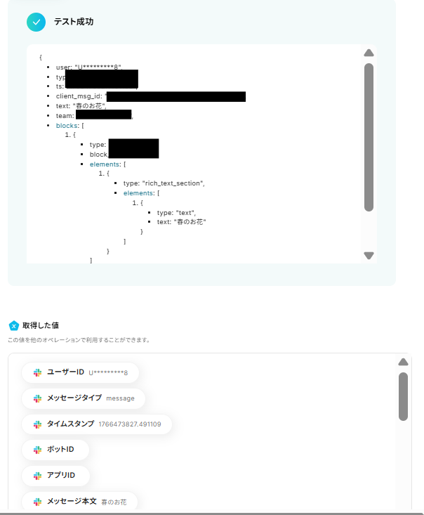 ※取得した値とは? 取得した値とは、トリガーやオペレーション設定時に、「テスト」を実行して取得した値のことを指します。 取得した値は、後続のオペレーション設定時の値として利用でき、フローボットを起動する度に、変動した値となります。詳しくは以下をご覧ください。
