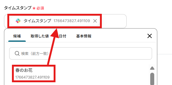※取得した値を使用すると、トリガーが起動するたびに最新の値を自動で引用できますので、必ず取得した値を使用してください。