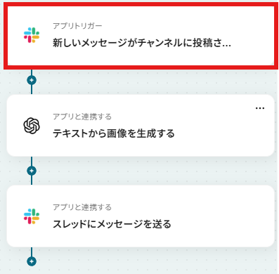 Slackでテキストから画像を自動生成するフローを作ってみよう それではここから代表的な例として、Slackで投稿された内容を基にOpenAIで画像を生成し、スレッドに画像URLを送信するフローを解説していきます!