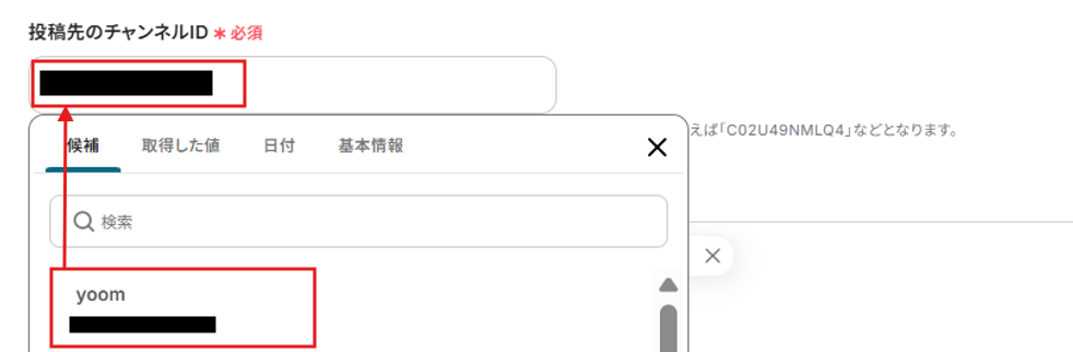 続いて、SlackとYoomをつなぐための設定を行います。通知を送りたいチャンネルを、一覧から選んでください。