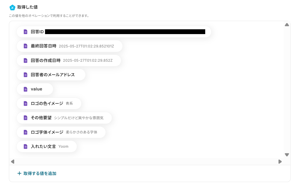 ・Googleフォームをトリガーとして使用した際の回答内容を取得する方法は下記を参照ください。https://intercom.help/yoom/ja/articles/6807133