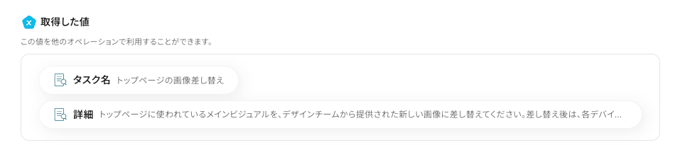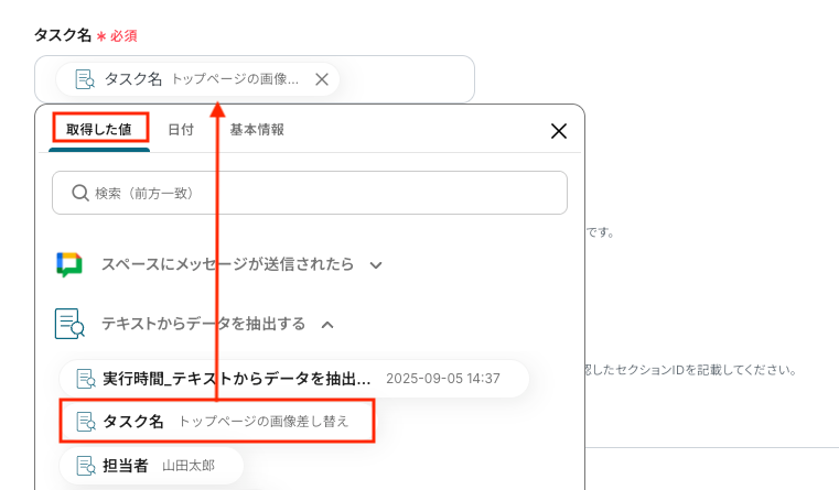「タスク名」を取得した値から選択します。