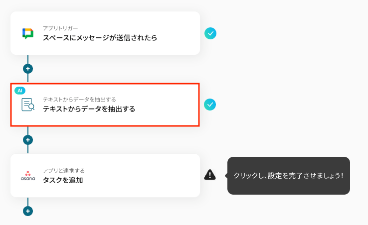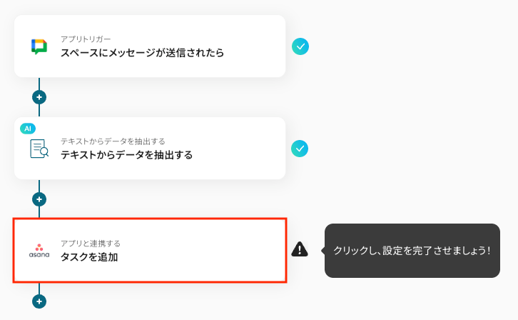 Google Chatから抽出したテキストを使って、Asanaにタスクを作成するための設定をします。