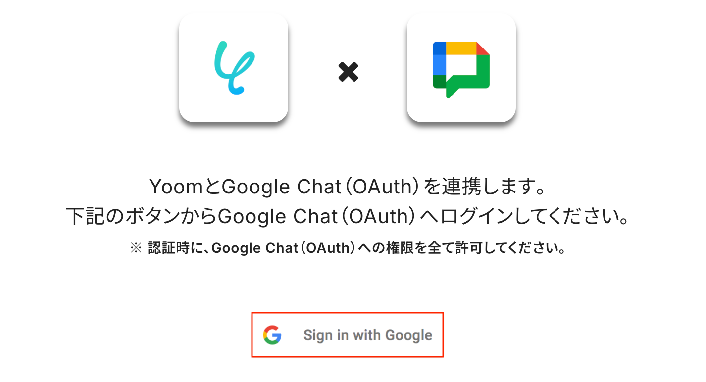 Google Chat(OAuth)を選択したら、「Sign in with Google」をクリックし、次に進みましょう。