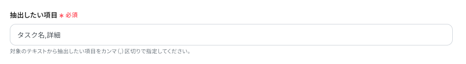「抽出したい項目」には、 Asanaでのタスク作成を想定し、連携したいものを手動で入力します。