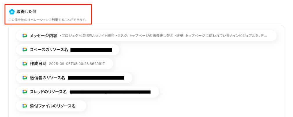 ※取得した値を使用することで、毎回最新のメッセージからテキストを抽出できます。
