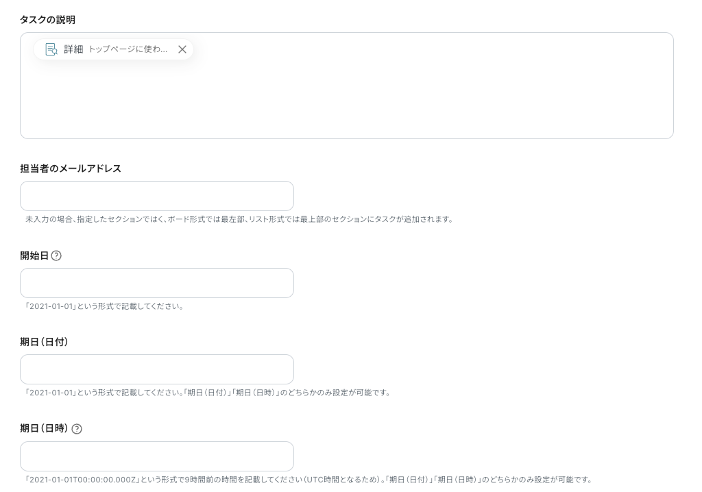 ※「タスク名」はタスク作成における必須項目です。