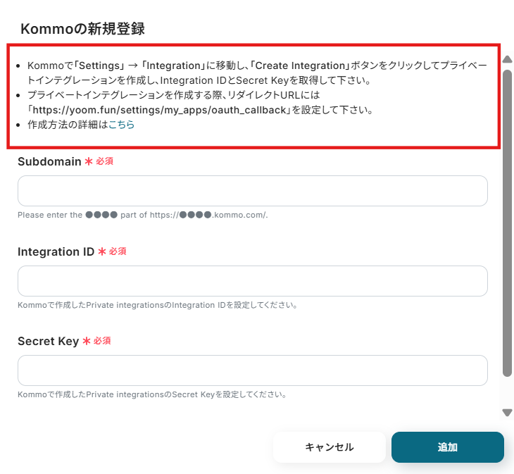 ・Kommo、SlackのそれぞれとYoomを連携してください。