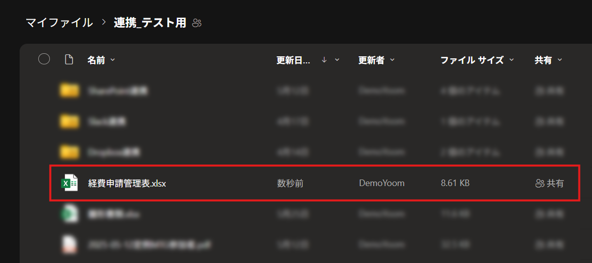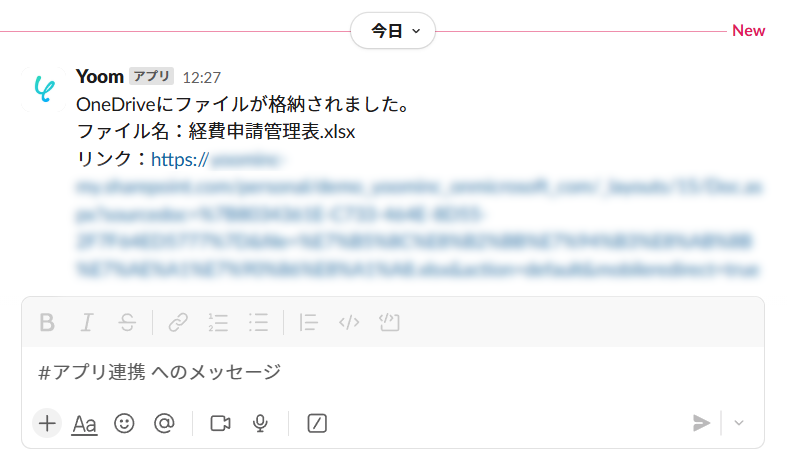 OneDriveの指定したフォルダにファイルを追加し、そのファイル情報がSlackに通知されていれば成功です。