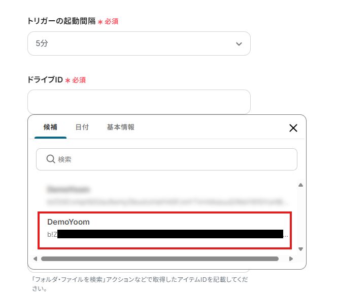 「ドライブID」にトリガーとなるフォルダが属しているドライブのIDを設定。
