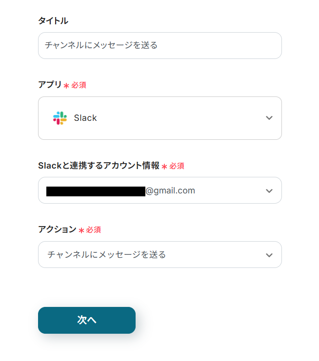 連携アカウントとアクションを確認し、「次へ」をクリック。