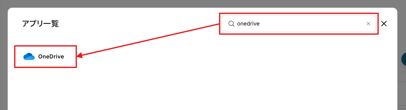 アプリ一覧画面が表示されたら、右上の検索バーでアプリ名(ここではOneDrive)を検索して選択。