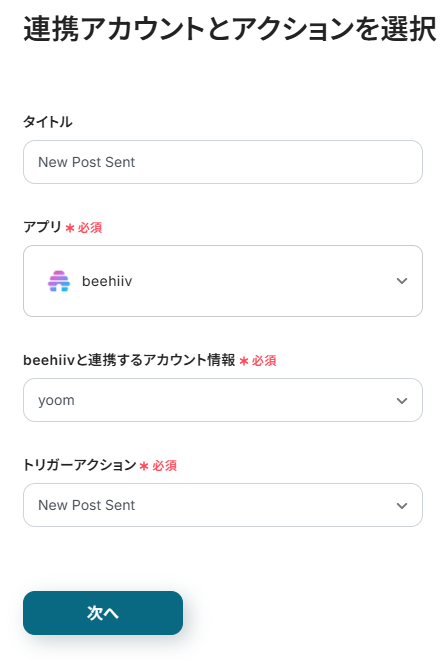 ・beehiiv、SlackのそれぞれとYoomを連携してください。