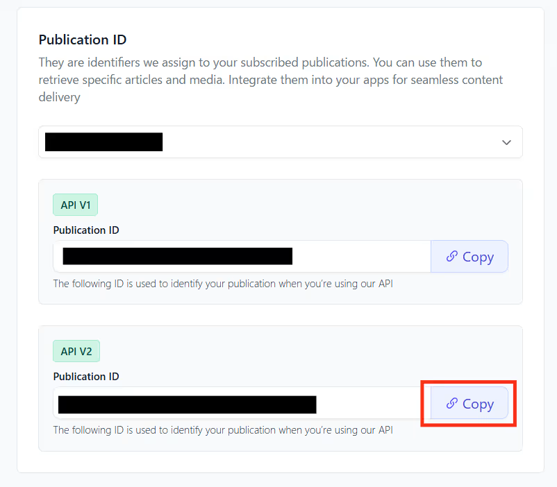 「API V2」のPublication IDを取得しましょう。