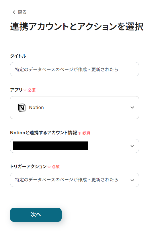 ここで設定した時間間隔ごとに1度、Notionでページの作成・更新があったかを確認します。