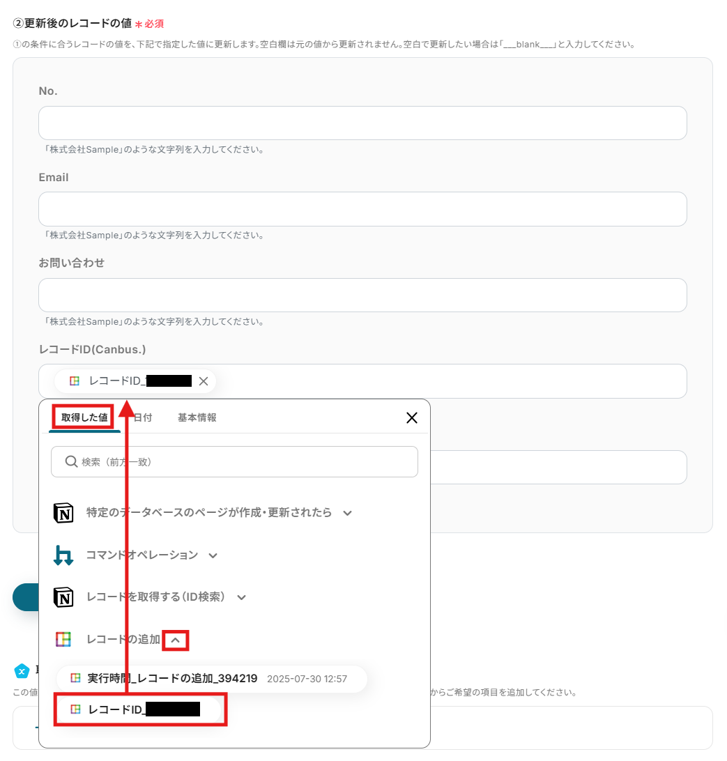 レコードIDをNotionで管理することで、ページ内の情報が更新された際にCanbus.のレコードも自動更新する設定に利用できます。