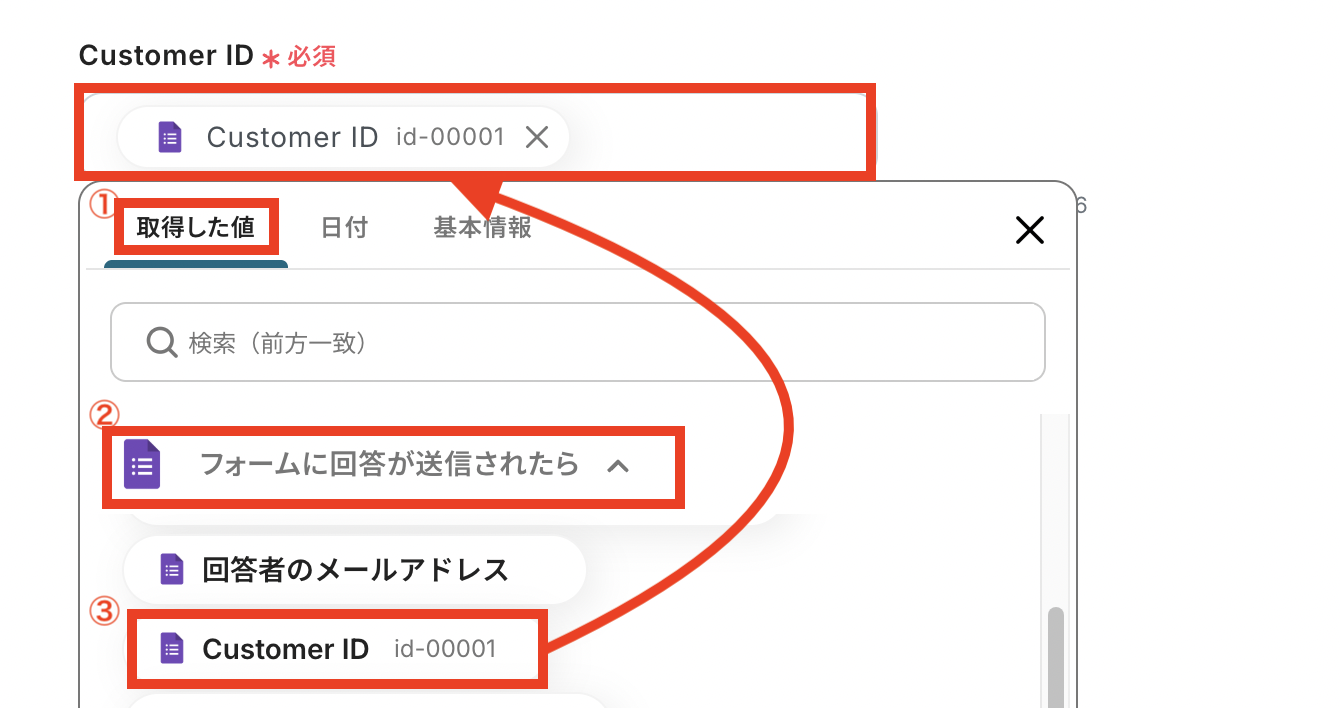 - 「Customer ID」など埋め込みたい回答内容を選択