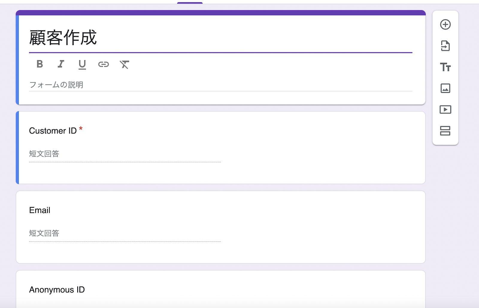 今回はテスト用として、以下のような顧客作成フォームを事前に作成しています!
