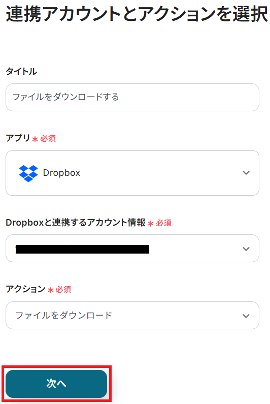 ステップ4:Dropboxでファイルをダウンロードする設定